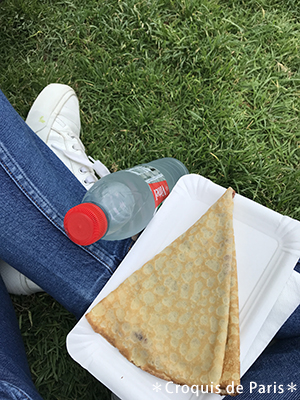 近くで売っていたクレープを買って自分たちも芝生に座って