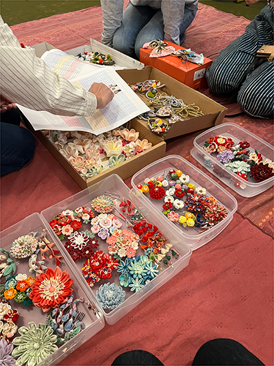 ☆ 絞り細工をしている義姉にプレゼントしてもらった髪飾り。髪結も自分たちで。 ☆