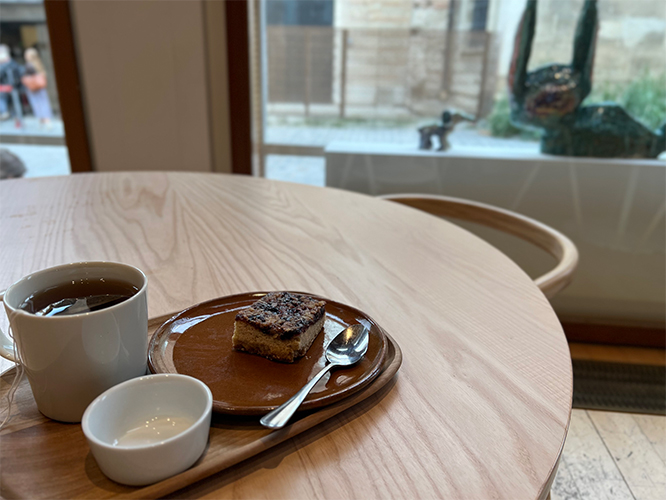 ブルーベリーのケーキとアールグレイの紅茶をカウンターで受け取って、