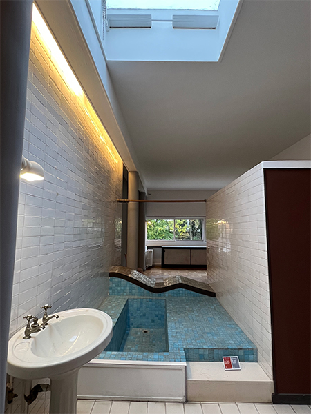 夫婦の寝室から、タイルの庭園に抜ける間には小さな書斎が。
