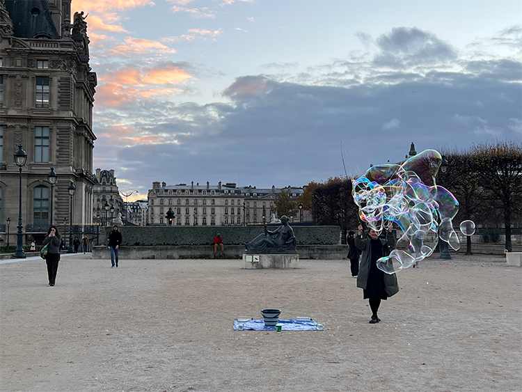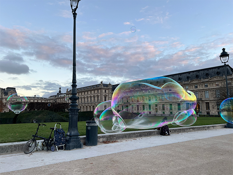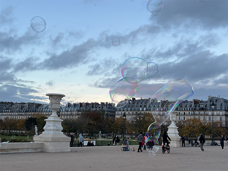 空に舞い上がってゆく大きなシャボン玉にうっとり。