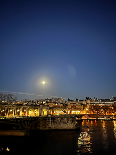 見送った後、真正面にお月様を見ながら導かれるようにセーヌ川の方へ。