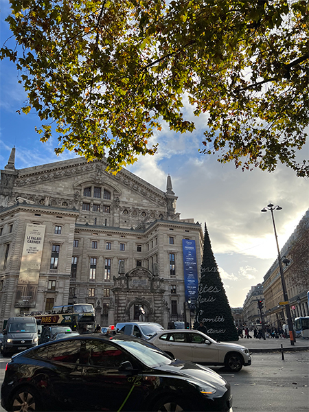 パリらしい薄曇りの空に、向こうには太陽の光が差していますね。