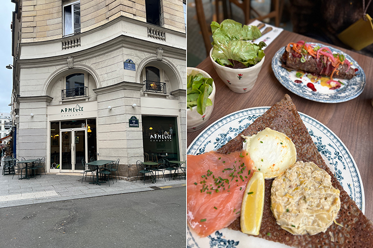 私の方はガレットの上にそのままスモークサーモンとシェーブルチーズ、ポワローネギがそのまま乗っていたり。