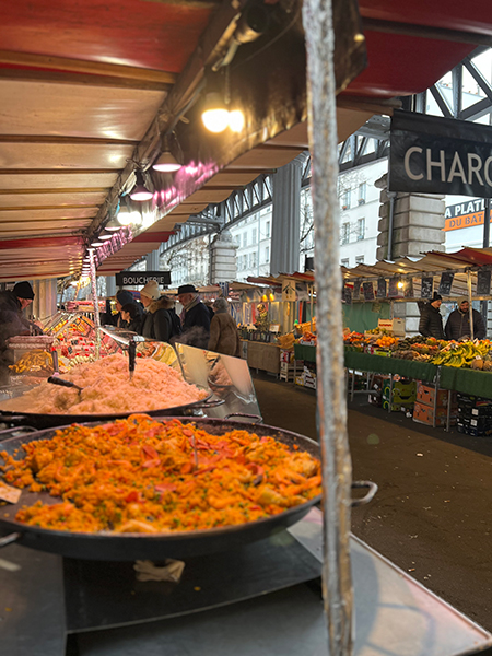 入り口から食欲をそそられる大きな鍋のパエリアを横目で見ながら