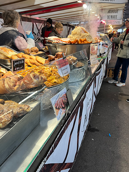 湯気が上がっているのはドイツに近いアルザス地方が発祥のシュークルートの大鍋