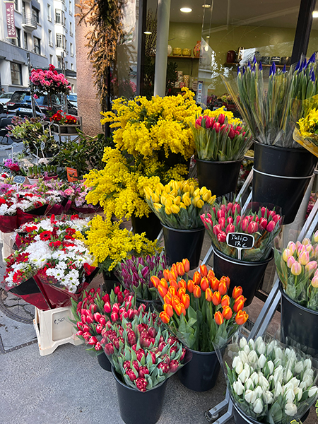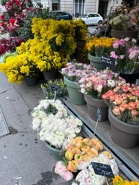 外に出ると、早速目の前から大きなミモザの花束を持った男性が、