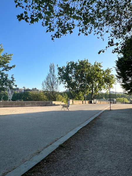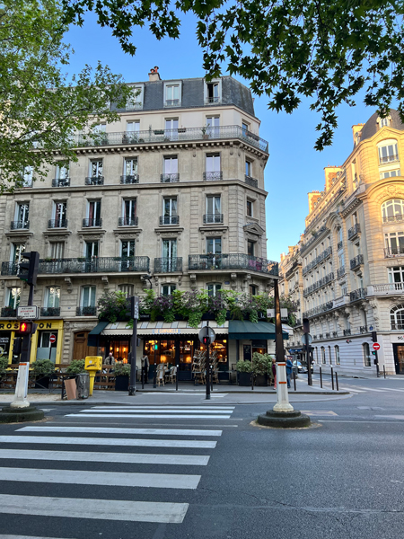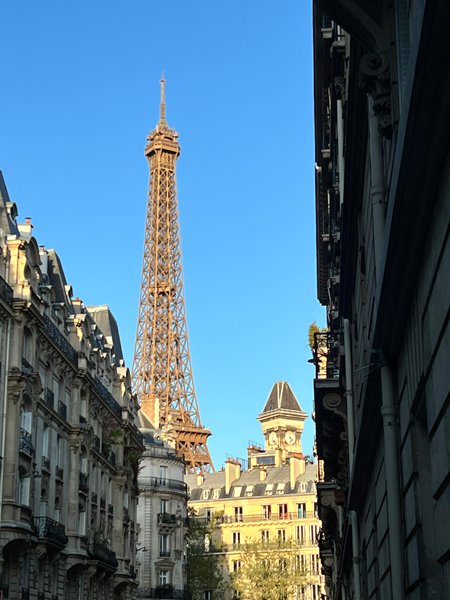 さっき前を歩いてきたエッフェル塔が建物の向こうから覗いてます。