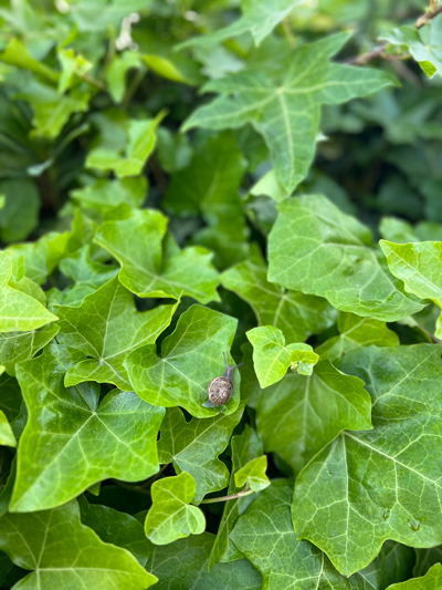 ふと見ると、足元のアイビーの葉の上には小さなカタツムリも^^