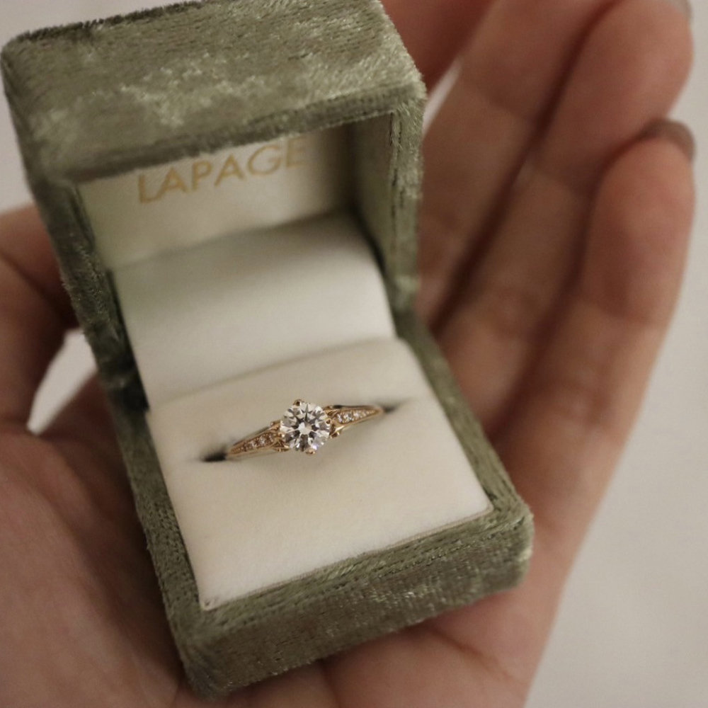 とても緊張した面持ちでご来店された彼氏様。サプライズプロポーズに向けて、時間が迫る中、「何から始めればいいのか分からない」と少し焦っておられるご様子でした。彼女様の好みのデザインやサイズが分からず、さらにお日にちも限られていたため、LAPAGEの“プロポーズプラン”をご提案。 後日、デザイン選びの際に彼女様が選ばれたのは、「彼が選んだダイヤモンドがより一層輝くように」と想いを込めて選ばれた〈サント・シャペル〉。おふたりの想いが重なり、真剣に選ばれる時間は、あっという間の4時間でした♡