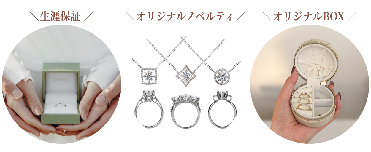 『ラパージュ』は歴史の始まり、歴史の1ページといった意味を持つフランス語『la page』から名付けられましたふたりにとって、ふたりだけの大きな歴史の1ページ祝福すべき歴史のはじまりです。ふたりの絆の証としての結婚指輪これからの幸せへの歴史を刻み込んでください。そして日常の中、ふと薬指に『LAPAGE』の指輪を見た時思い出してください。『はじまりの1ページ』を・・・。