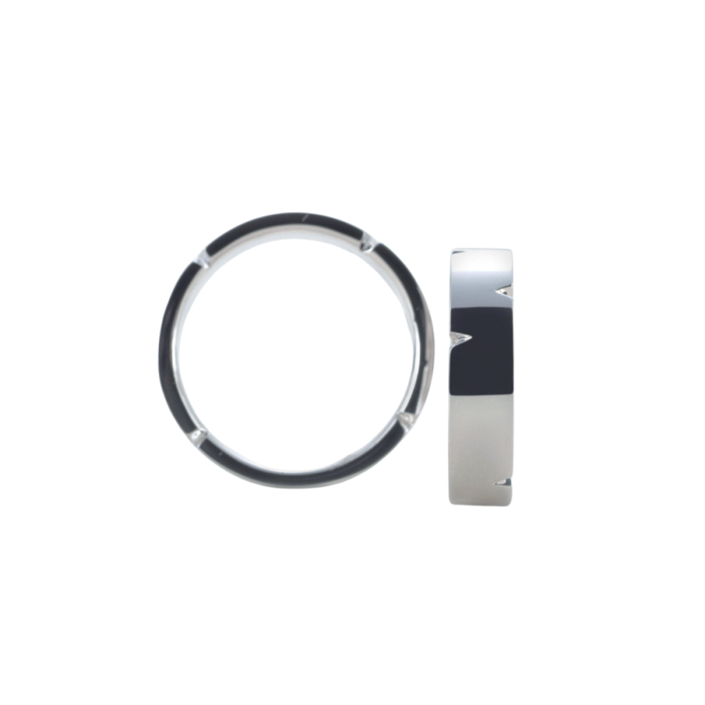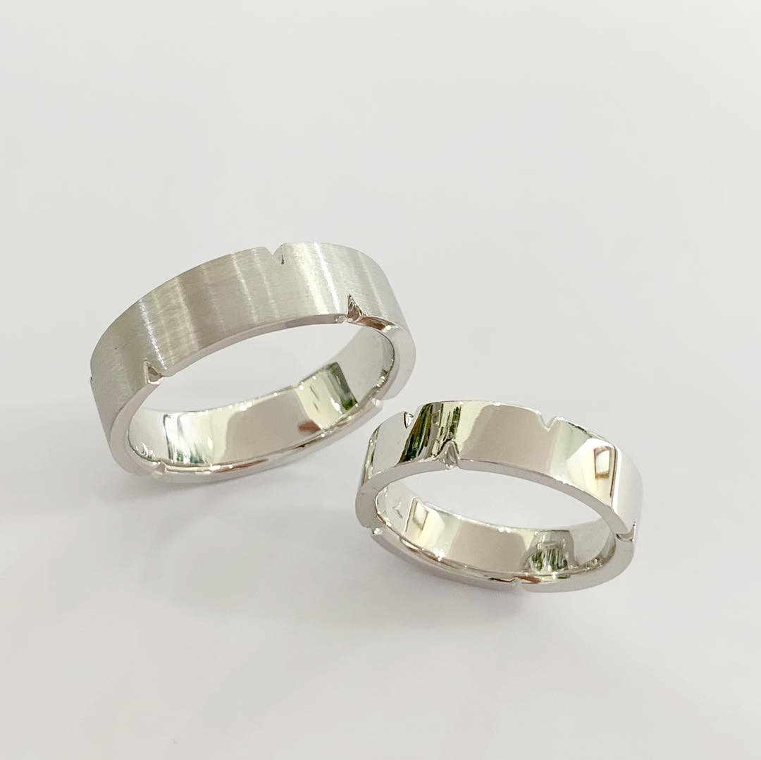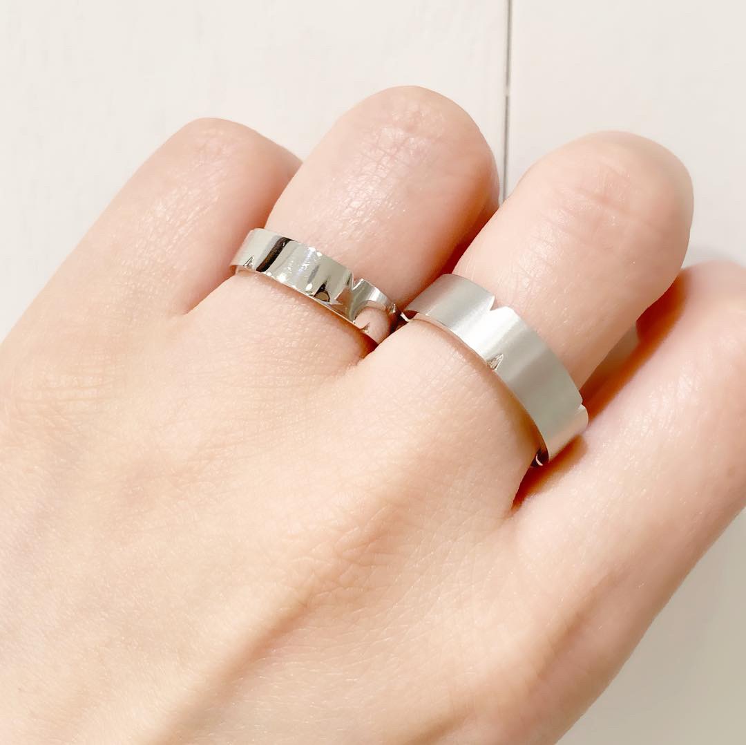 シンプルな平打ちラインに、無造作にスタイリッシュにカットされたリング。