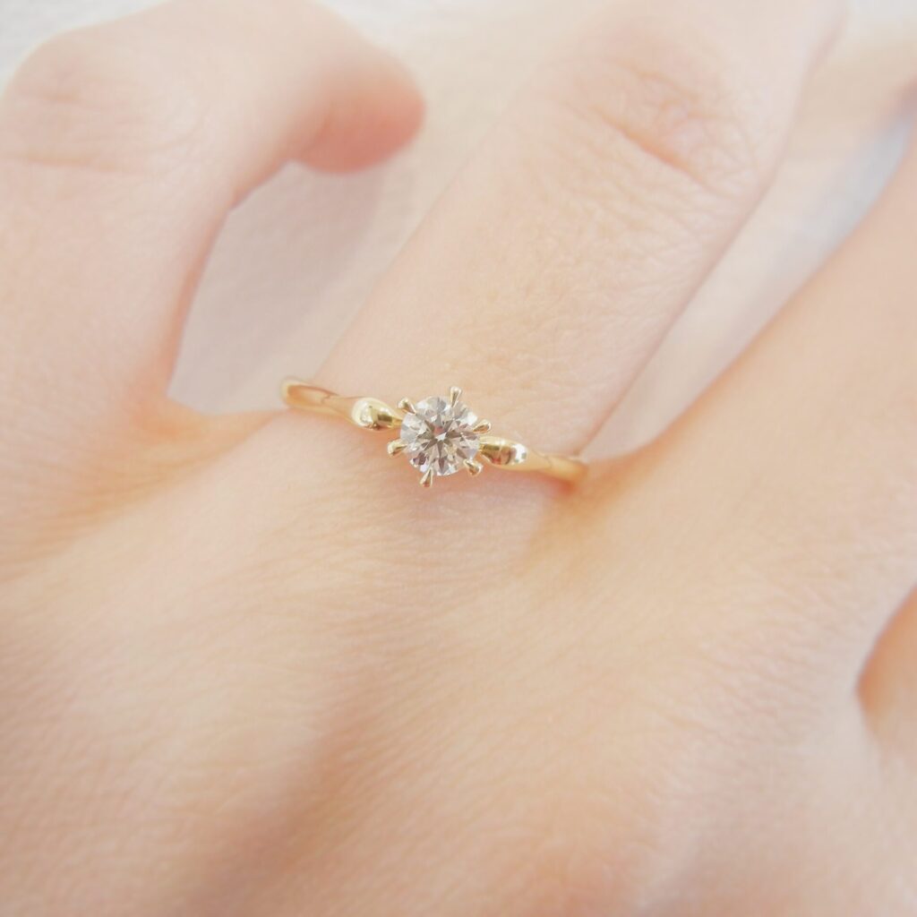 凛とした中にも優しい印象を 持つデザイン。清らかな小さな羽で 一途な想いをあなたに届ける。