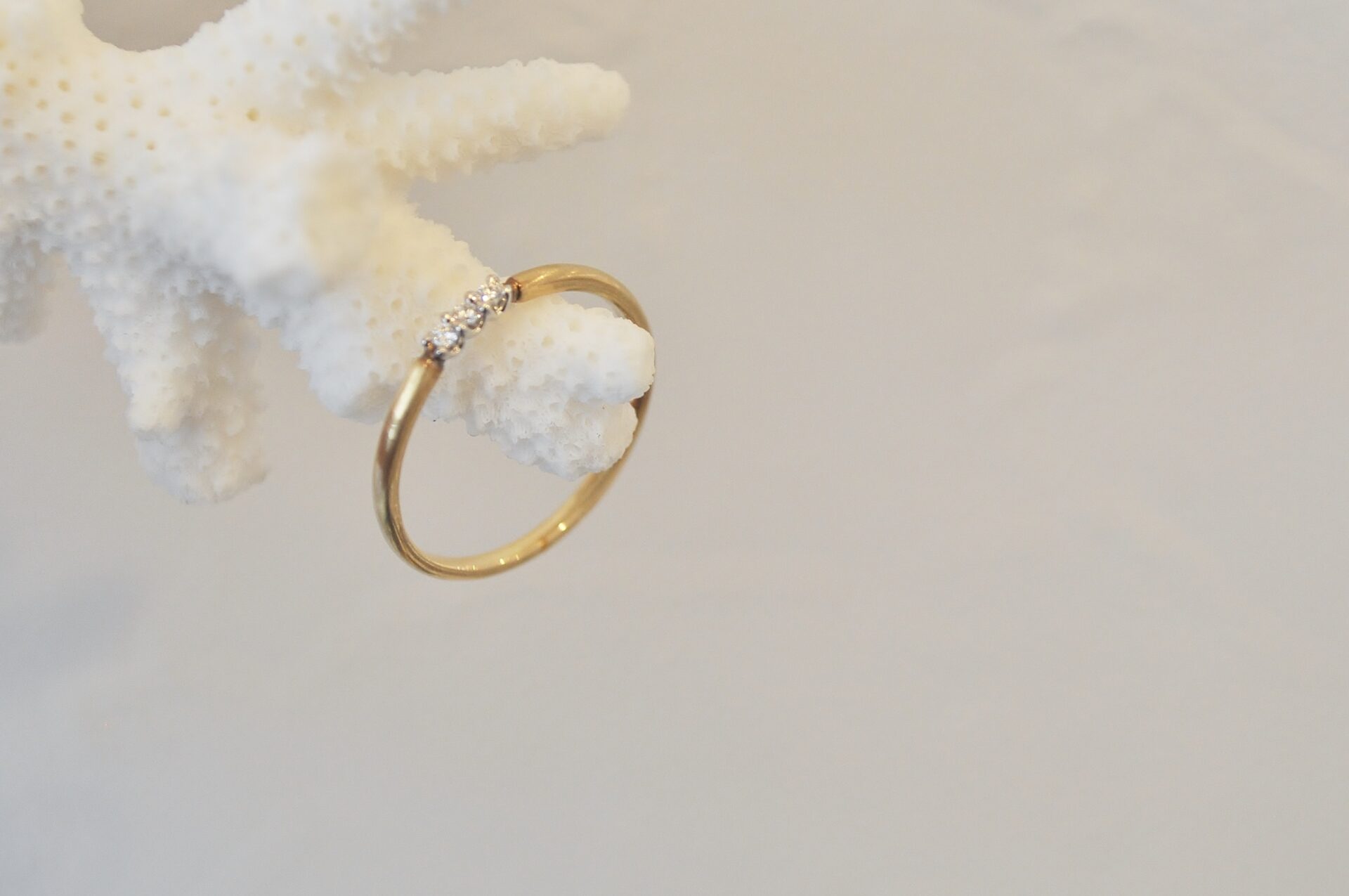 三位一体を表す3。華奢なフォルムに、丁寧に留められた3石のダイアモンドが輝く『トロワ』。 バランスのとれた品のあるデザインは、3周年の記念日としても。