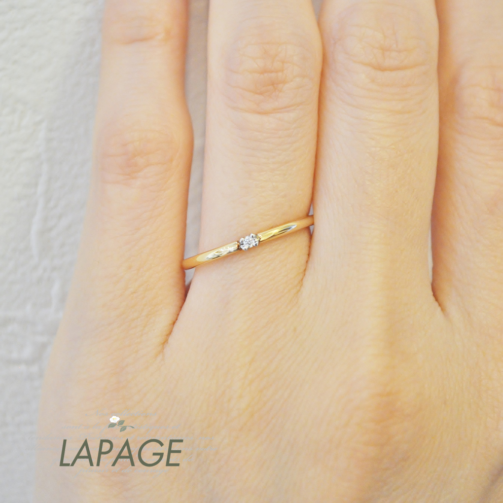 はじまりの1 全てをあらわす1『アン』 華奢なフォルムに丁寧に留められた一粒のダイアモンドが優しい存在感を放ちます。 1周年の記念日としても。