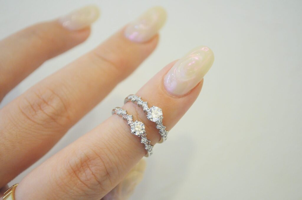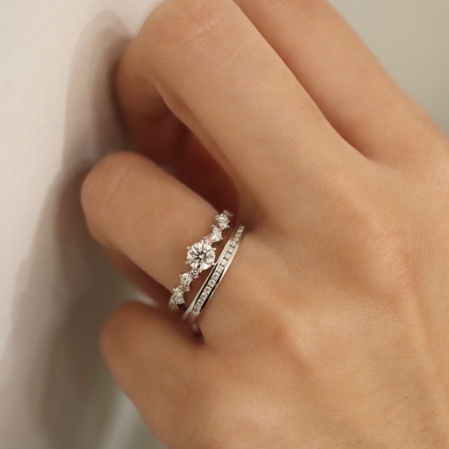結婚指輪と重ね付けをしても、派手になりすぎずさりげなく存在感があり、絶妙なハーモニー☆彡