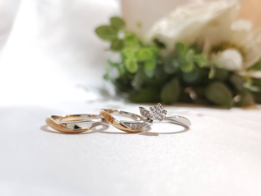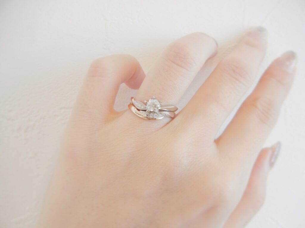 エンゲージリングとマリッジリングを重ね付けするとこのようなイメージです♪