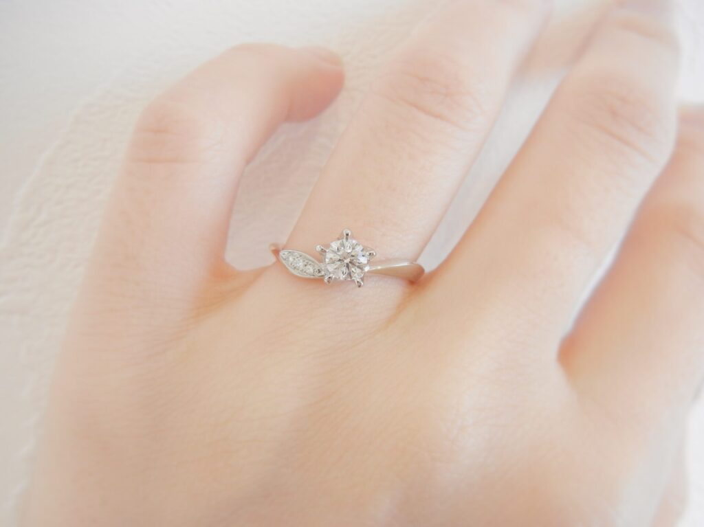 ダイアの輝きとリングの曲線が合わさることで手全体のバランスが美しくなります。