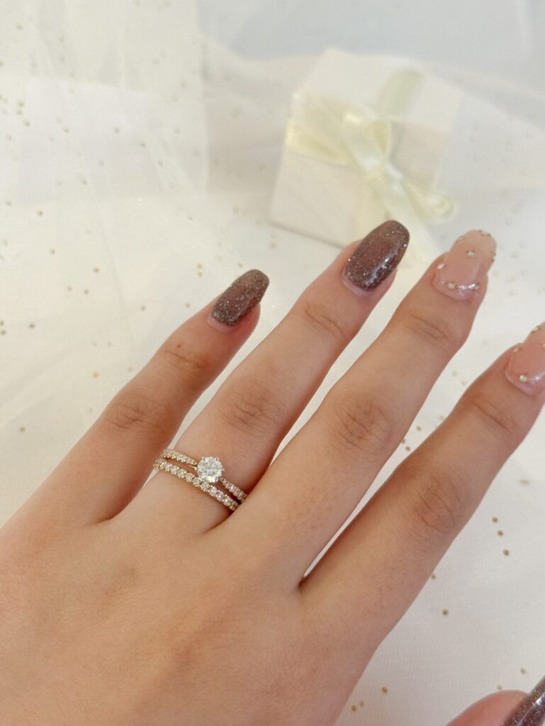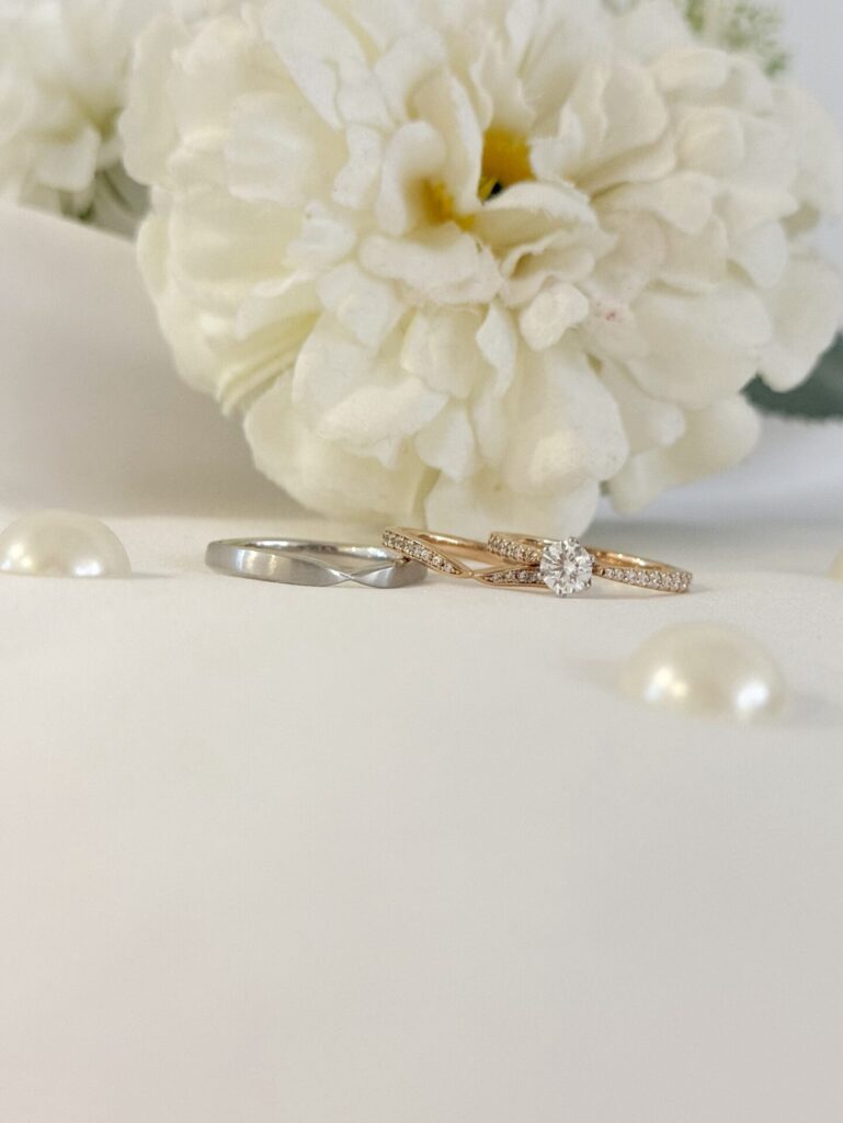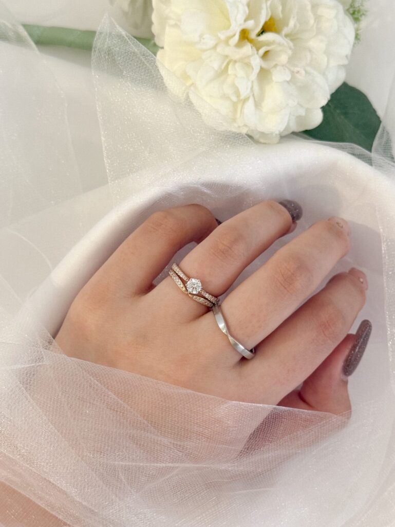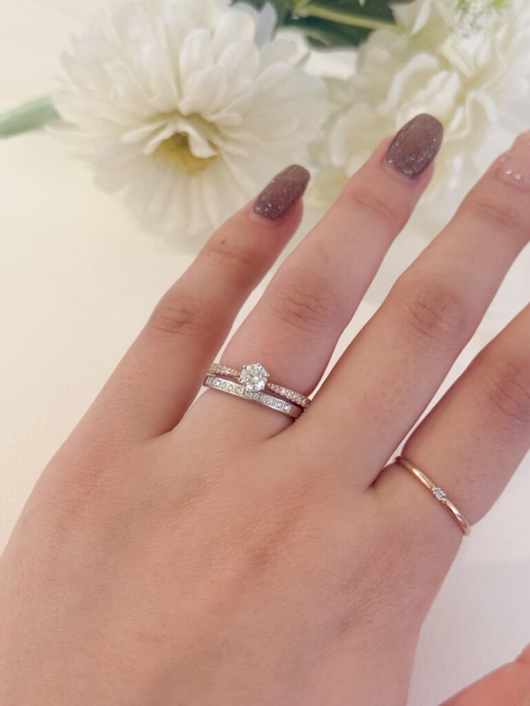 結婚指輪との重ね付けによって、また違った表情を見せてくれます✨