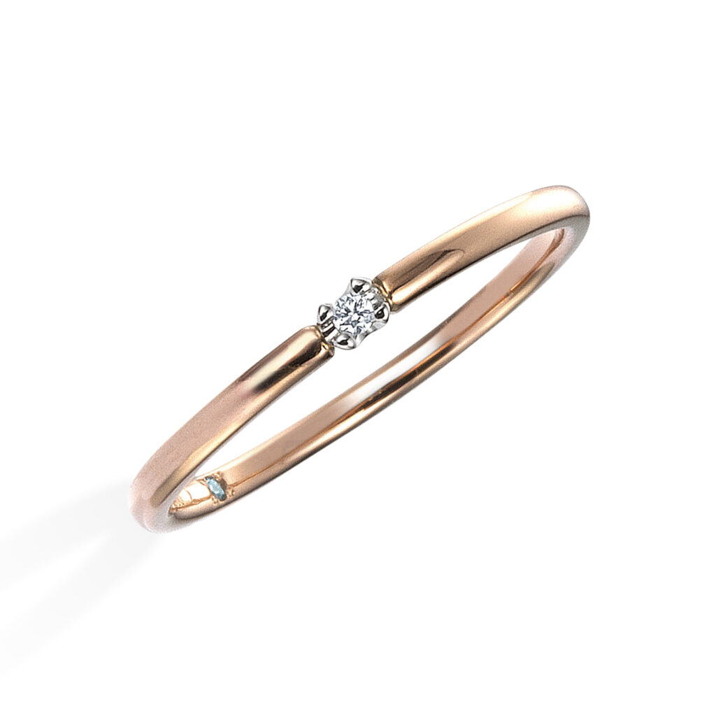 華奢なフォルムに丁寧に留められた一粒のダイアモンドが優しい存在感を放ちます。