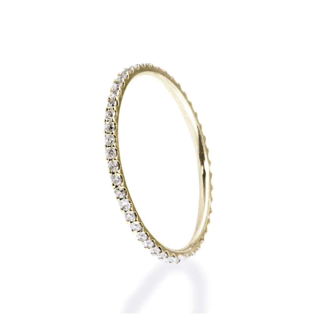 済んだ夜空に星たちが瞬くように、全周に施したダイヤモンドが贅沢に煌くフルエタニティリング。